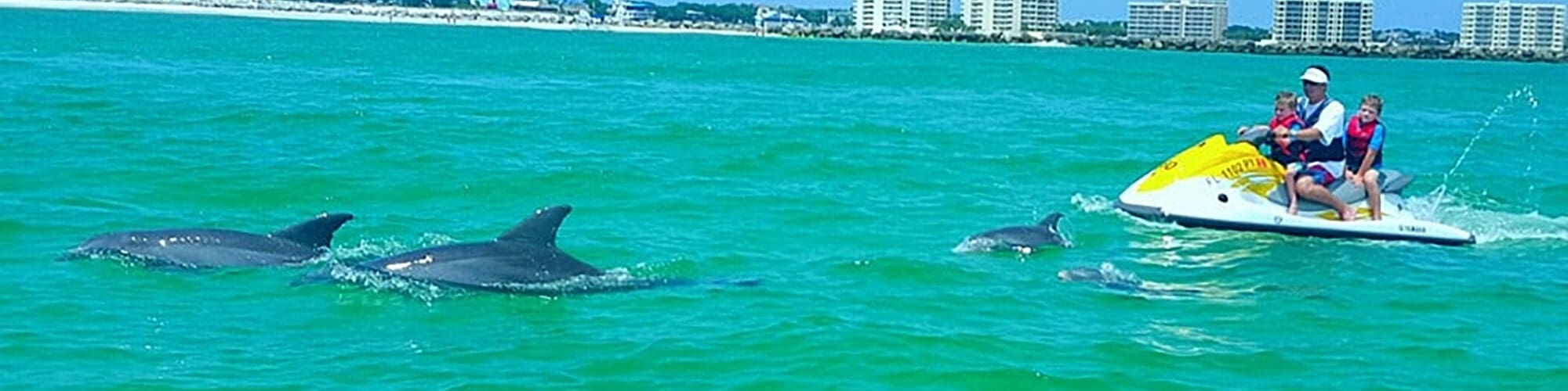 The tour lasts about an hour and a half and is a great way to explore the Island from the water. These dolphin tours have become a part of many families’ annual trip because of the uniqueness, and the memories they create. You MUST be at least 18 years of age to drive a Wave Runner/Jet Ski.